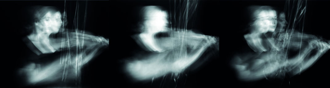 physikalisch- chemischen Prozesses der analogen Fotografie. Was mich aber neugierig macht und zum Suchen treibt, sind die Reste dieser Niederschreibung des Lichtes in den Porträts. Es ist mein
